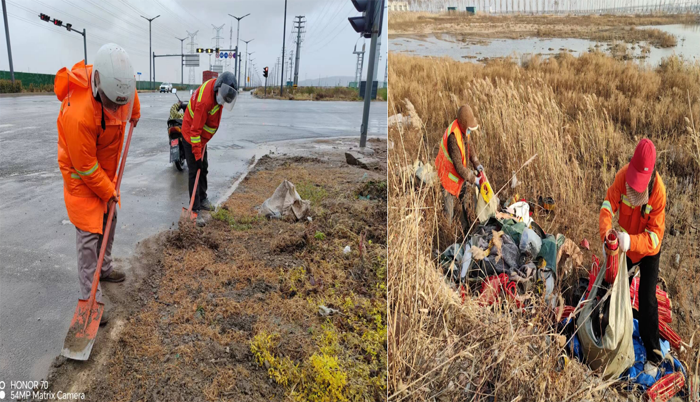 ? ? ? ?突擊處理“一馬當先”。該分公司園區(qū)兩個班組雙休期間,及時服從徐圩城建活動保障路線整改要求,強化蘇海路路面兩側施工圍檔,石化三路中風帶護欄清洗力度。班組人員兩人一對,三人一組,無懼徐圩海風吹透身體,揮動手中拖把清洗圍檔,護欄長達1000多米長,清除車輛拋灑積土20余處,用辛勤勞作汗水踐行勞動本色。