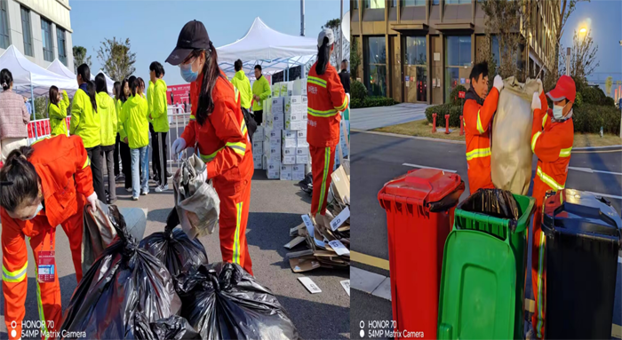 10月22日凌晨3時(shí),保潔公司40余名保潔先鋒兵鋒六路安全序時(shí)趕赴賽事保障區(qū)域。道路現(xiàn)場(chǎng),保潔衛(wèi)士無懼深秋徐圩海風(fēng)吹透身體,兩人一組,揮動(dòng)手中掃把,徒手清掃各個(gè)活動(dòng)區(qū)域積土1000多米長,撿拾海風(fēng)吹落各種垃圾100余包。比賽現(xiàn)場(chǎng),保潔人員無視秋日暖陽照曬,及時(shí)有效清理運(yùn)動(dòng)員丟棄飲料瓶300余包,清理打包各種餐盒2000多個(gè),轉(zhuǎn)運(yùn)各種垃圾200多車。大家齊心合力的工作精神與賽事活動(dòng)融入一體。